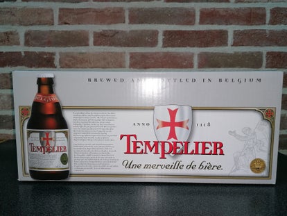 Een mooie doos van Tempelier bier gevuld met allerhande Tempeliers cadeautjes waaronder Tempelier bier Strong blond en Amber , glas ,...