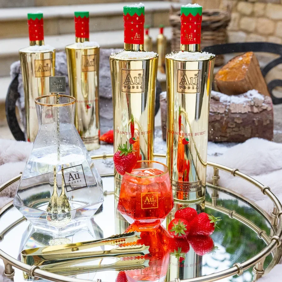 Goud staat symbool voor kracht en perfectie en vertegenwoordigt de uitzonderlijke smaak van onze Au Vodka Strawberry Burst.